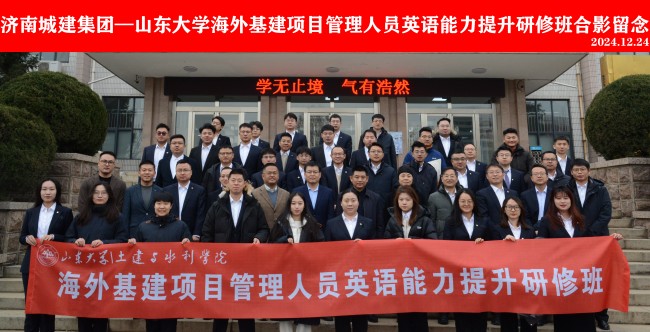 12月24日,集团2024年海外业务骨干英语能力提升培训班在山东大学千佛山校区开班。山东大学土建与水利学院正处级组织员胡岩、副院长王少伟,集团党委委员、副总经理史红军参加活动。集团市场经销管理相关岗位人员参加培训。