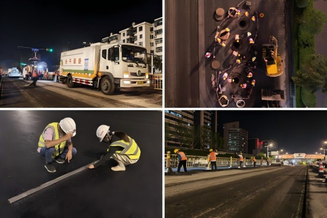 秋夜的华灯渐隐,经十的忙碌渐缓。此时,“城建铁军”悄然登场,默默为这条城市主动脉施行“深度保养”,以“城建速度”全力推动济南市经十路焕新蜕变。9月6日晚22:00,集团承建的济南市经十路整体养护提升工程正式开工。项目采取夜间施工模式,每日22:00至次日6:00进行施工,白天正常向市民开放交通,最大程度减少对日常出行的影响。截至目前,集团项目建设团队累计完成舜耕路-千佛山路、千佛山路-山师东路、山师东路路西、燕山立交主线及地面辅路铣刨罩面4.9万平方米,累计摊铺2000立方米,基层注浆施工3000平方米,184座检查井和62处雨水箅施工已全部完成,以实干实绩推进项目建设提速跃进。