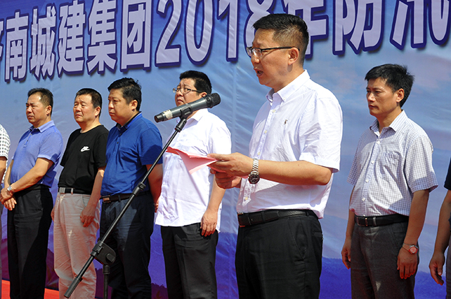 为进一步提高集团防汛应急预案的科学性、有效性和可操作性,增强各单位、各部门的沟通协调配合能力,提高应急反应和防汛抢险能力,6月15日上午,在十分公司飞跃大道施工现场举行“古天乐代言太阳集团138集团2018年防汛应急演练”。济南市防汛抗旱指挥部办公室调研员张文河,综合科科长杨志斌,综合科段好明;济南市交通委设施管理处处长杨峰,安监处处长苏力;集团副总经理牛勇,工会主席、总经济师朱相波,副总经理马烽等150余人参加了演练活动。