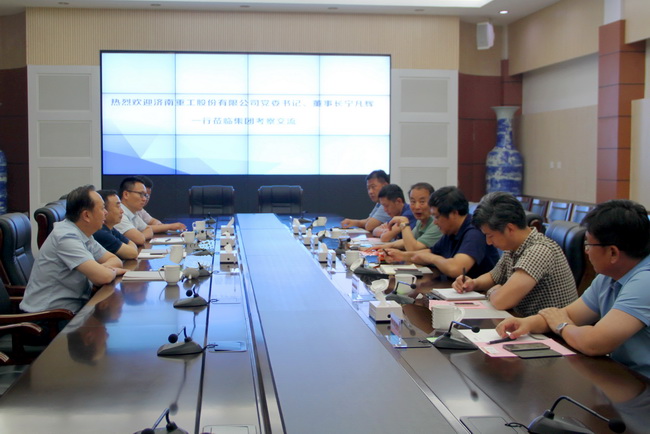 5月30日,济南重工股份有限公司党委书记、董事长宁凡辉,党委副书记、总经理卢庆亮一行4人来集团考察交流。集团党委书记、董事长汤继沂,党委副书记、总经理牟晓岩,党委副书记、副总经理刘相华以及相关单位负责人在四楼会议室座谈交流。