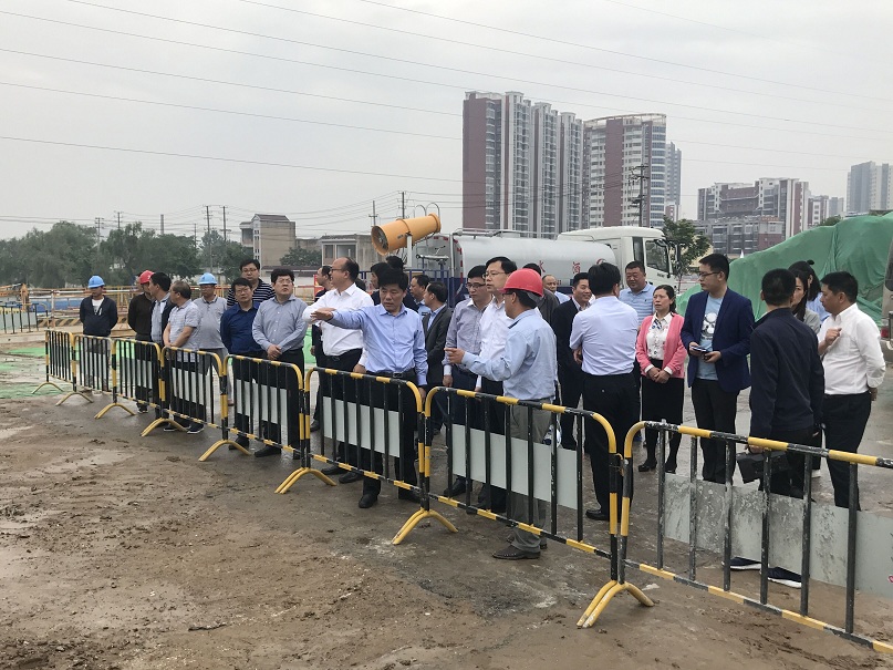 彭伟县长现场察看了天津路下穿通道主体工程进展情况,详细询问了工程周边的交通状况,在认真听取项目部汇报后,对工程进度、安全文明施工及项目部前期工作表示满意,并对项目及周边建设等方面的后续工作提出指导意见及要求。他强调,各参建单位要进一步强化责任意识,加大现场安全文明施工力度,确保施工任务按计划保质保量完成。