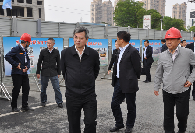 4月24日,泰州市副市长徐克俭一行察看六分公司泰州永定路施工现场,对工程扬尘治理情况进行检查指导。