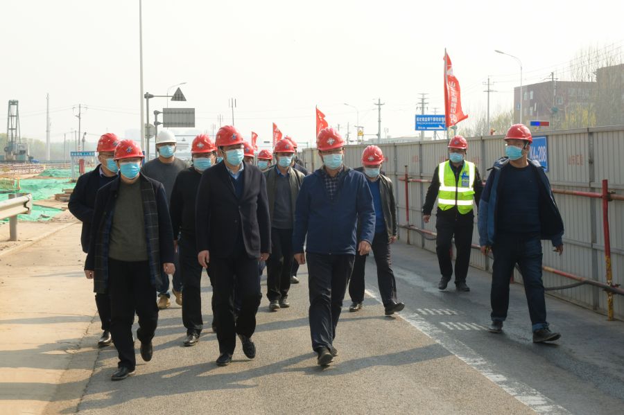 4月2日下午,集团党委书记、董事长、总经理牟晓岩调研察看集团新旧动能转换起步区横二路大寺河桥桥梁、黄河大道工程一期二标、济南轨道交通3号线二期、济南至潍坊高速公路济南连接线(旅游路东延)等工程疫情防控和施工情况。集团副总经理吕守明、史红军,总工程师许庚,副总经理、安全总监马烽,以及相关职能部室、各参建分(子)公司负责人等参加活动。