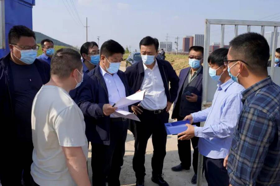 4月20日,济南市城乡交通运输局党组书记、局长曹殿军带队督导检查集团承建的旅游路东延项目疫情防控工作。市交通运输局副局长姜春华,集团副总经理吕守明等参加活动。
