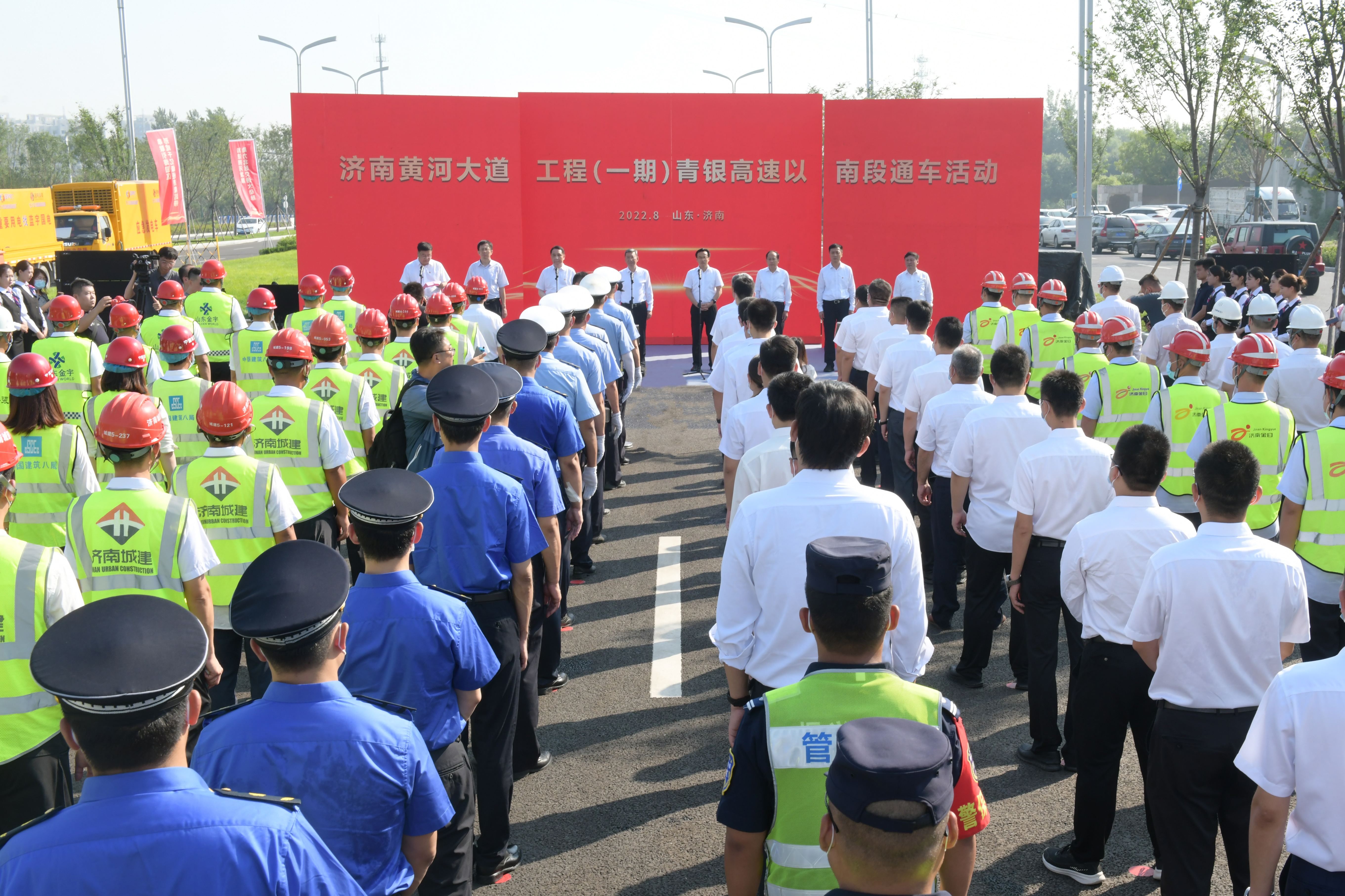 8月17日,济南黄河大道工程一期(青银高速以南段)通车仪式在黄河体育中心快速路通道南口举行。市委常委、副市长、济南新旧动能转换起步区党工委副书记、管委会主任孙斌,副市长任庆虎,市政府副秘书长刘念成、吴剑,济南建设集团党委书记、董事长史海成,集团党委书记、董事长、总经理牟晓岩等参加活动。