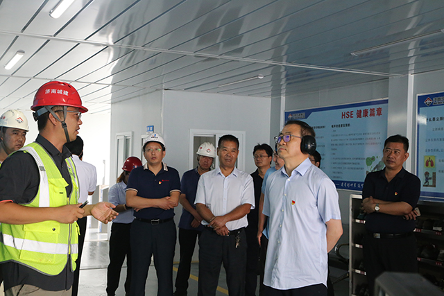 6月30日,济南市城乡交通运输局局长贾玉良一行察看集团承建的春暄路道路建设工程。集团总经理牟晓岩等陪同。