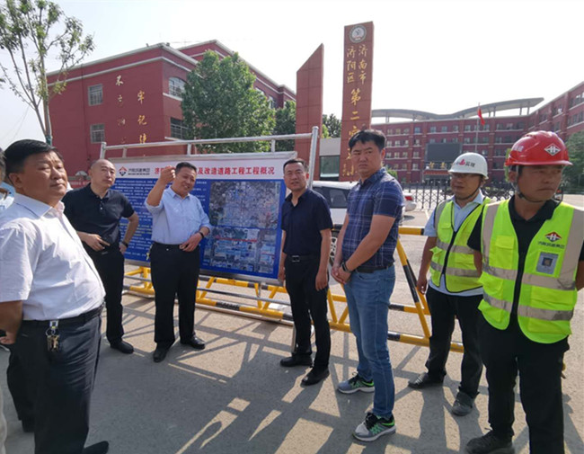5月25日下午,济南市济阳区委副书记、区长孙战宇,副区长李永军一行,到八分公司承建的济阳经四纬三路工程进行调研。
