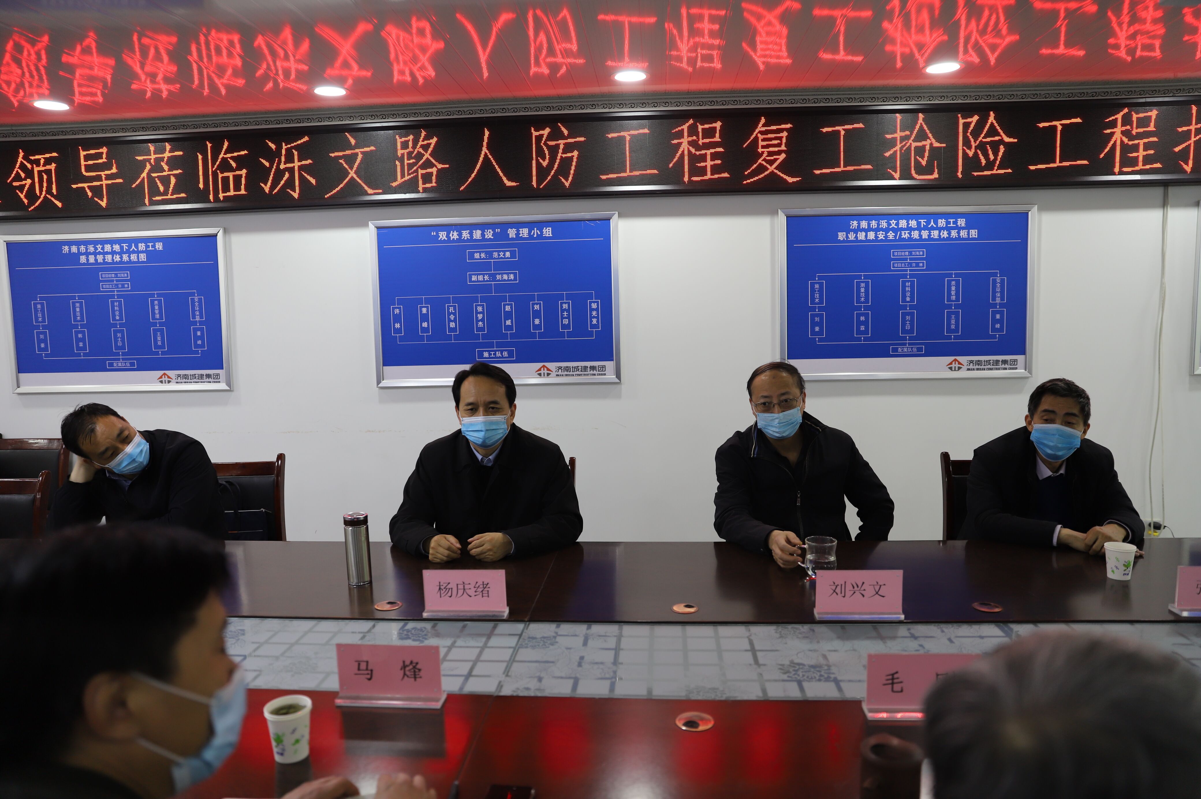 4月22下午,济南市人民防空办公室党组书记、主任杨庆绪及副主任刘兴文一行,到五分公司承建的济南市泺文路地下人防工程检查复工复产情况。集团副总经理兼五分公司经理马烽等陪同。