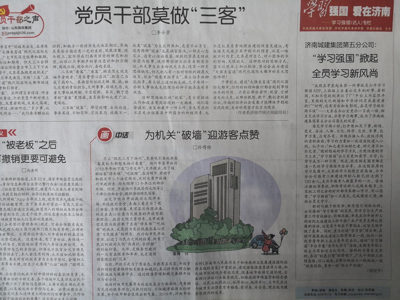 4月26日,《济南日报》学习强组(达人)专栏对集团五分公司学习强国事迹进行了专栏报道,《泉城党建》《泉城微讲》两大微信平台同步推荐。