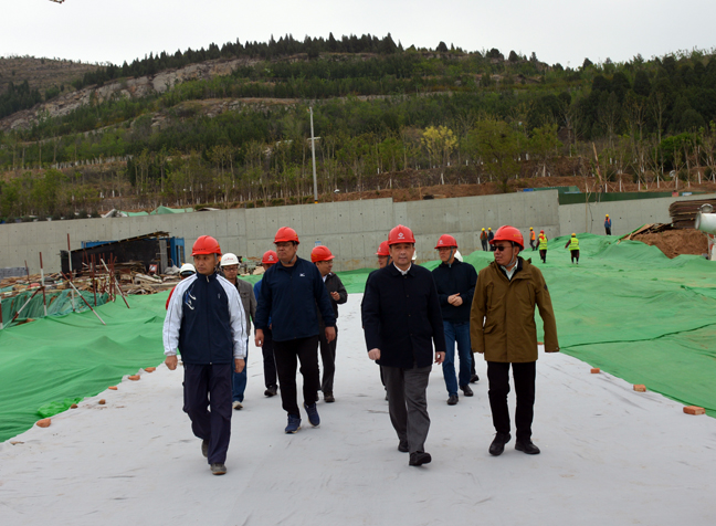 李国祥董事长(前排右二)察看施工现场