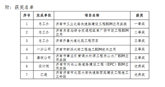此次大赛集团共有7项作品获奖,展现了集团的BIM技术实力。