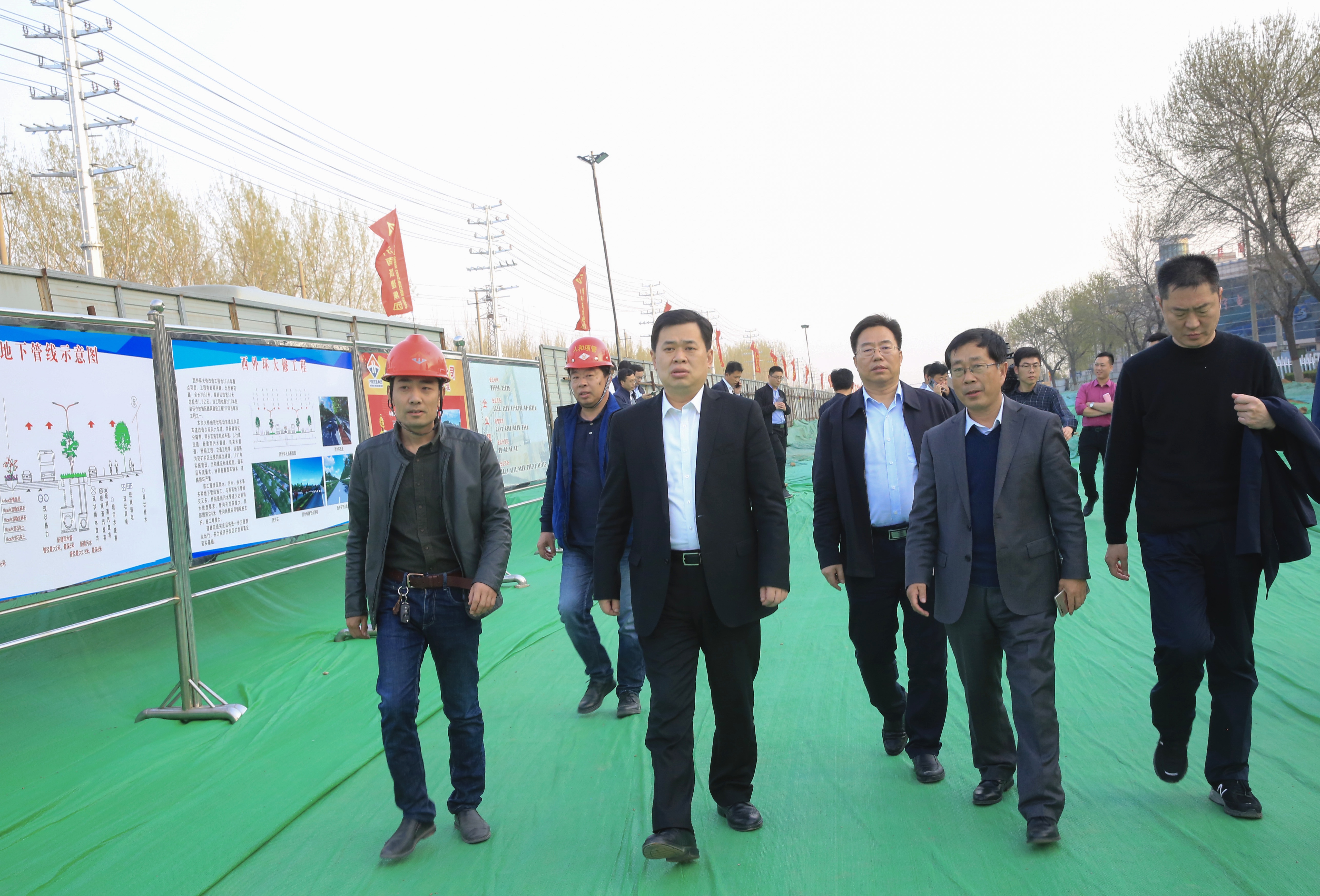 张百顺书记(前排左二)察看西外环道路改造工程