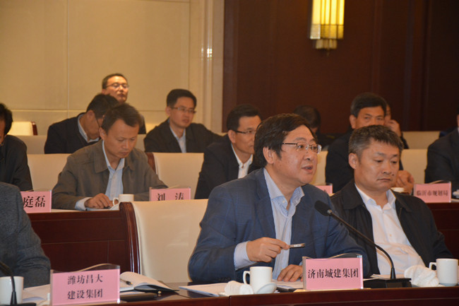 10月25日,山东省副省长刘强在临沂市主持召开了山东省建筑业情况调研座谈会。省住建厅厅长王玉志、省金融办主任刘晓、人民银行济南分行行长周逢民、山东银保监局(筹)副局长邢安锋、省城镇化办公室专职副主任宋锡庆,临沂市市长孟庆斌、副市长常红军、市政府秘书长解红日等参加了会议。集团作为受邀五家省内大型企业之一参加会议,牟晓岩总经理出席会议并作了汇报交流。