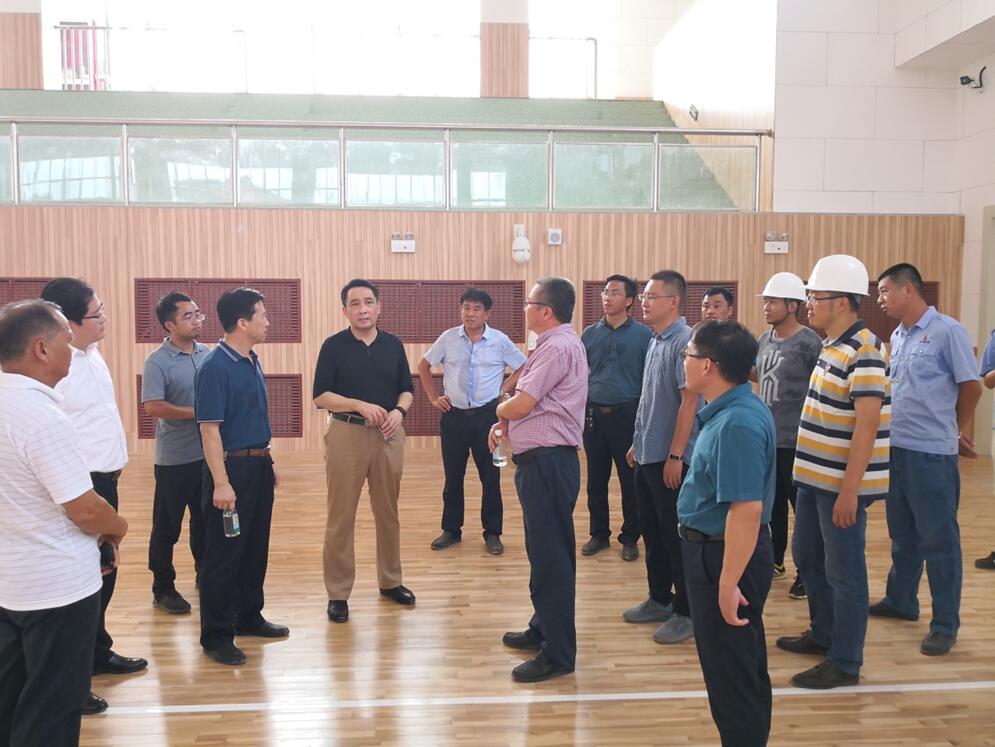 李国祥董事长(左五)察看体育馆建设