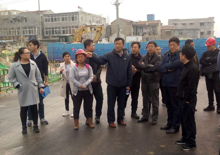 3月29日上午,济南市城乡交通运输委员会总工程师姜春华一行察看集团承建的刘长山路工程。市交通委建设处处长刘鸿顺、智慧管理处处长王增岗、副处长范育兵,集团副总经理吕守明等陪同。