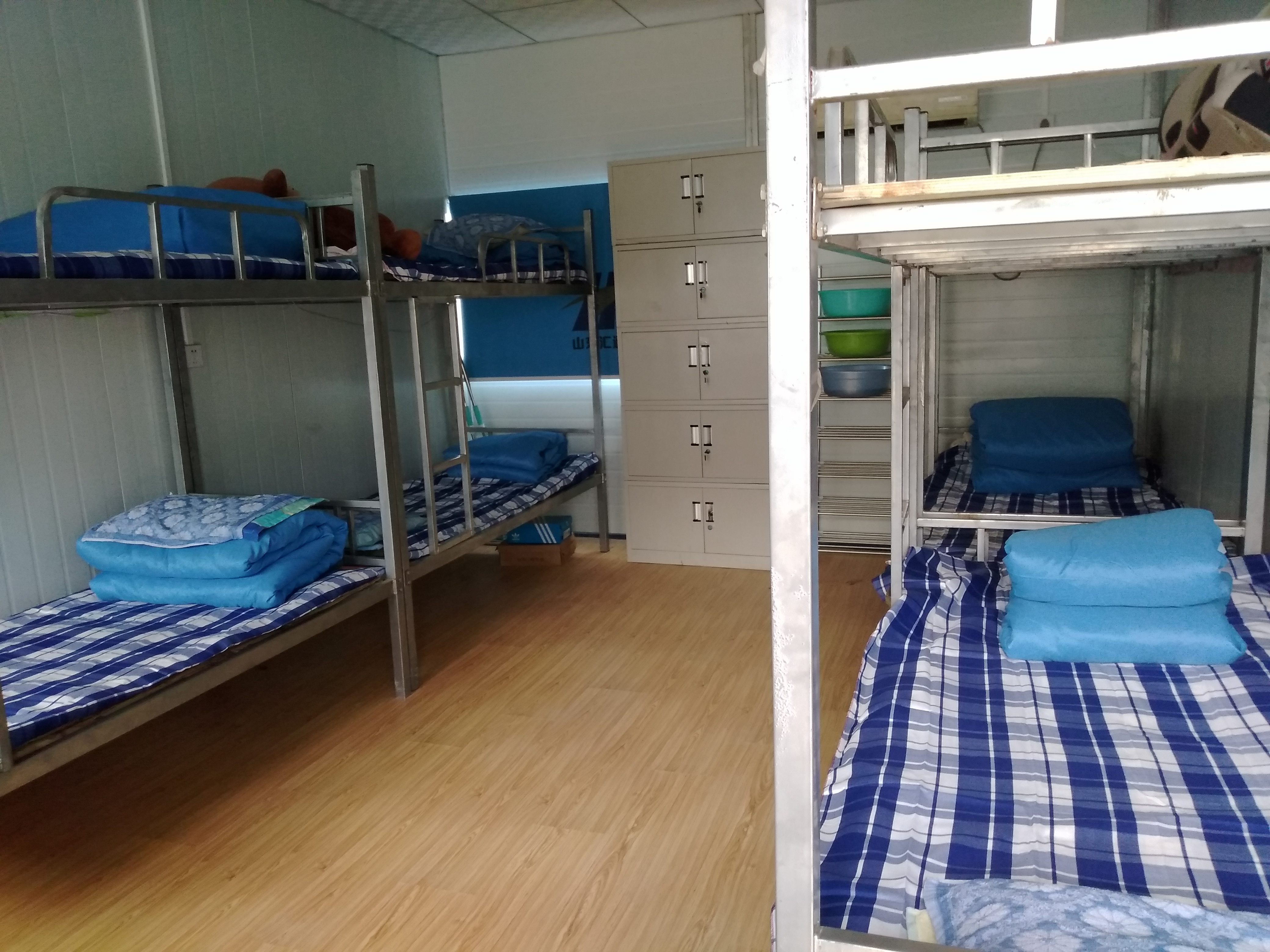为便于劳务人员日常管理,项目部推行劳务人员生活区集中设置,民工生活集中管理,设置大食堂,统一做饭,集中用餐模式。项目生活区实施公寓化管理,劳务人员生活区域使用门禁,实行刷卡进入;民工生活区设置水房、男女卫生间、洗浴间等生活设施,同时宿舍内为劳务人员统一配发被褥枕套、衣橱鞋厨等生活用品,为他们提供了舒适温馨的住宿环境。
