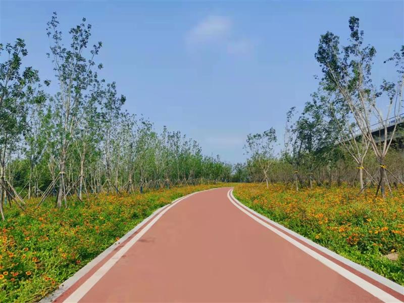 本项目区域内施工前均为建筑垃圾堆砌以及杂乱树林,共栽植乔木5500余株、灌木4500余株、草花地被160000余平、安装工程约10000平。工程完工后大大提升了当地景观生态环境,为起步区沿线居民提供了一处休闲娱乐场地。