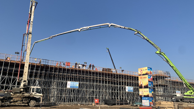济南绕城高速公路二环线西环段完成安仁互通主线桥首联现浇箱梁混凝土浇筑