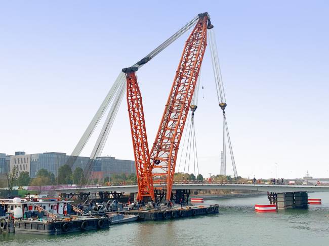 1月13日,随着左幅主跨钢箱梁吊装完成,标志着苏州方中街对接海纳街桥梁工程主桥顺利合龙。
