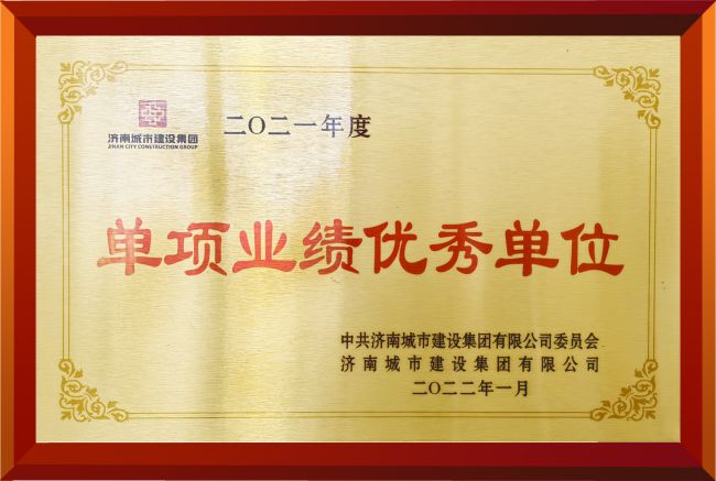 刘相华副总经理领取“济南城市建设集团2021年度单项业绩优秀单位”奖牌