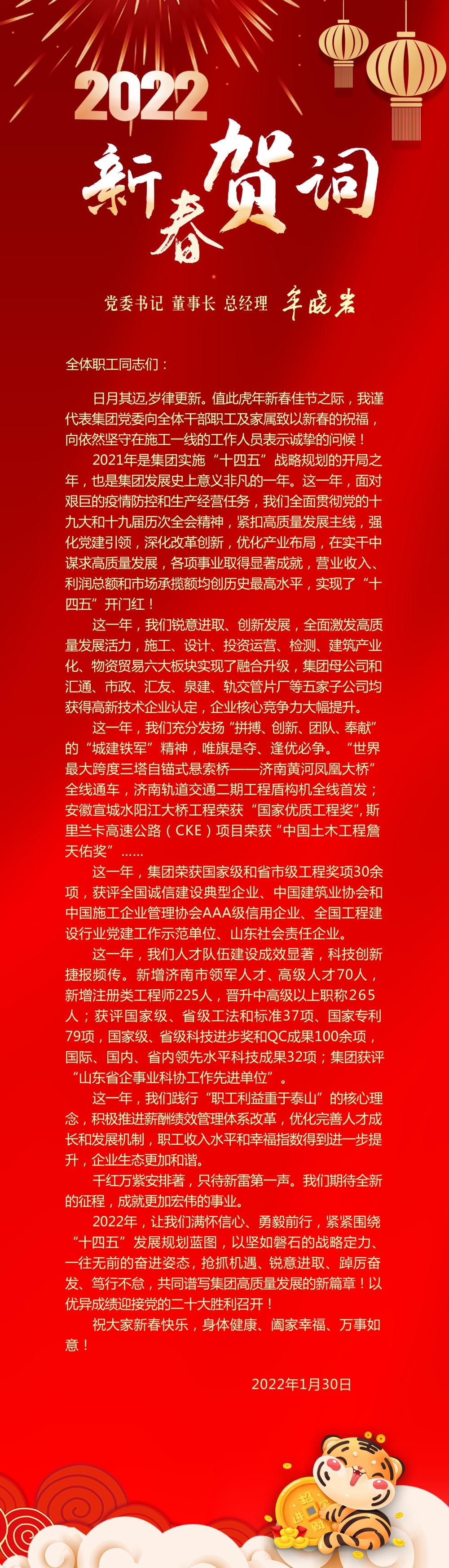 集团党委书记 董事长 总经理牟晓岩2022年新春贺词
