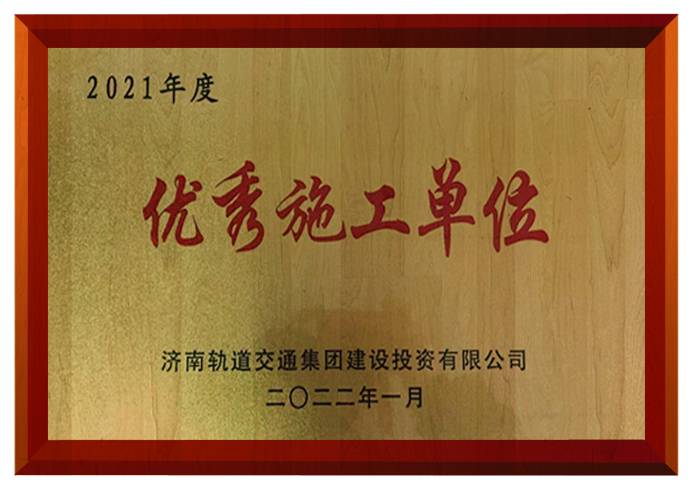 近日,济南轨道交通集团建设投资有限公司召开2021年度优秀参建单位及个人表彰大会,集团济南轨道交通6号线项目部荣获“优秀施工单位”荣誉称号。