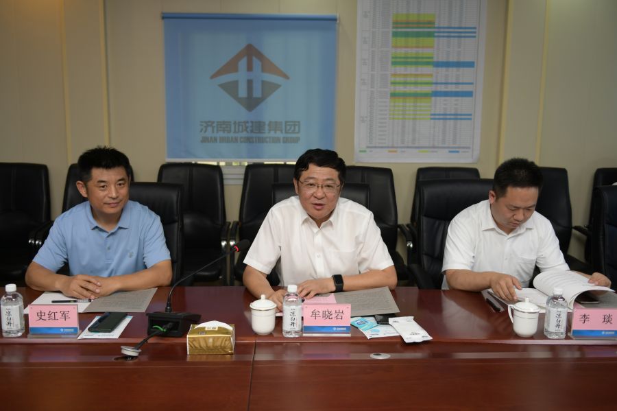 6月22日下午,济南市人大常委会原副主任孙积港等人大代表一行专题调研集团新旧动能转换起步区重大项目施工情况。集团党委书记、董事长、总经理牟晓岩参加活动。