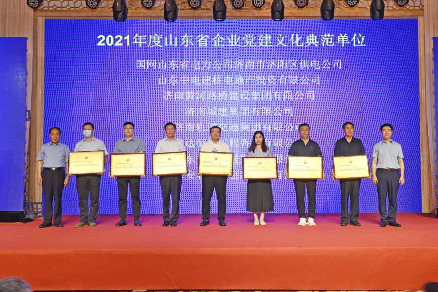 大会对山东省企业党建文化典范单位、企业文化建设先进单位等集体和个人进行了隆重表彰。集团荣获“2021年度山东省企业党建文化典范单位”。集团以“建有形世界,筑无限梦想”企业精神、“职工利益重于泰山”核心理念、“城建铁军”精神为代表的企业党建文化体系,赢得了与会领导、专家学者和企业家代表的高度评价。