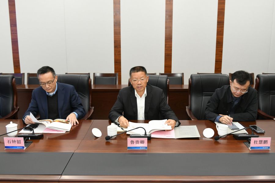 11月2日下午,中国平安集团执委、团金会高级顾问鲁贵卿,建筑企业管理数字化专家杜慧鹏,新中大科技董事长石钟韶一行5人莅临集团调研信息化建设情况。集团党委书记、董事长、总经理牟晓岩,总工程师许庚等参加座谈交流。