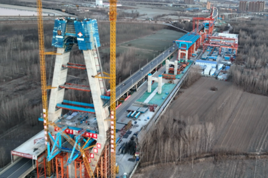 集团G104黄河公路大桥工程主塔浇筑高度率先破百