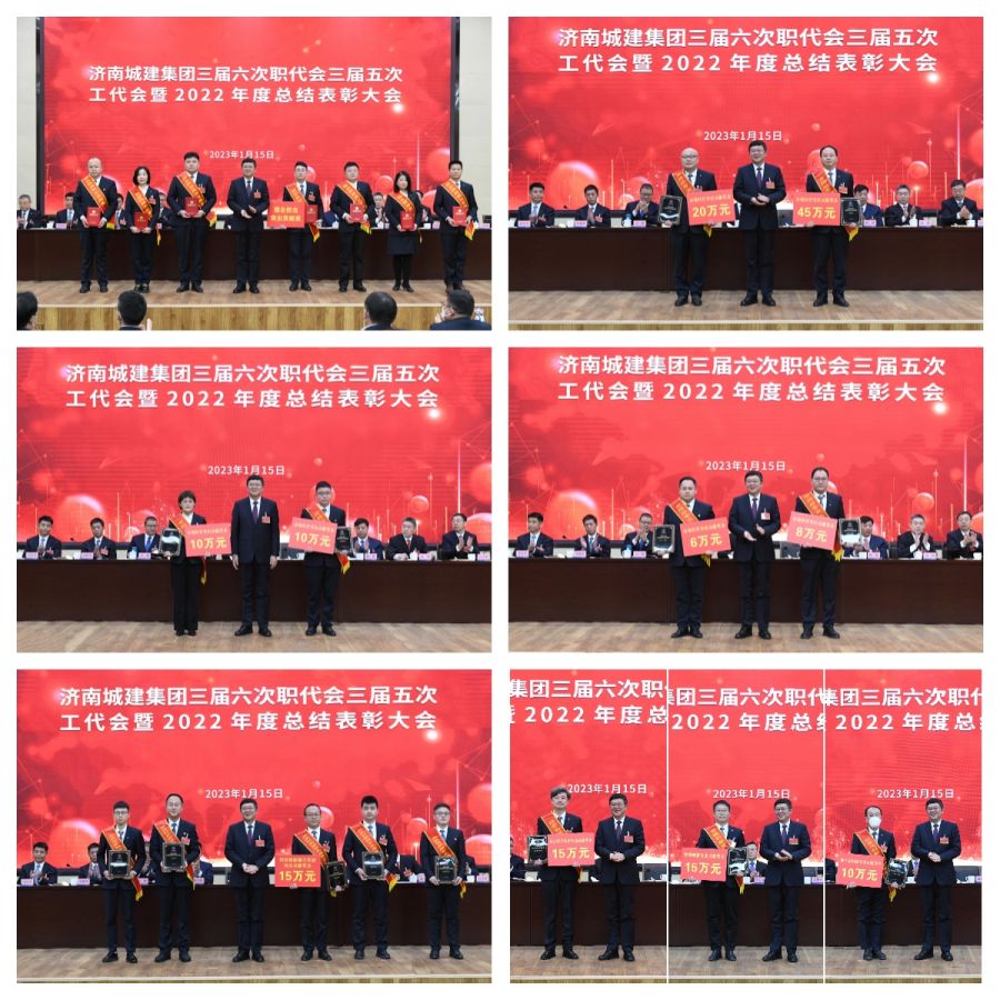 大会还对在疫情防控、市场经营、科技创新融合发展等6项工作中为集团发展做出突出贡献的团队和个人进行了表彰。集团疫情防控志愿服务队、汇通公司市场经营团队、集团市场经营部、集团材料设备经营部、集团人力资源管理部等12支团队和3名同志获得突出贡献奖,以及董事长专项奖励基金242.2万元。大会号召,全体干部职工要以先进典型为榜样,发扬“拼搏、创新、团队、奉献”的城建铁军精神,踔厉奋发、笃行不怠,在推进集团高质量发展的征程中奋勇争先。
