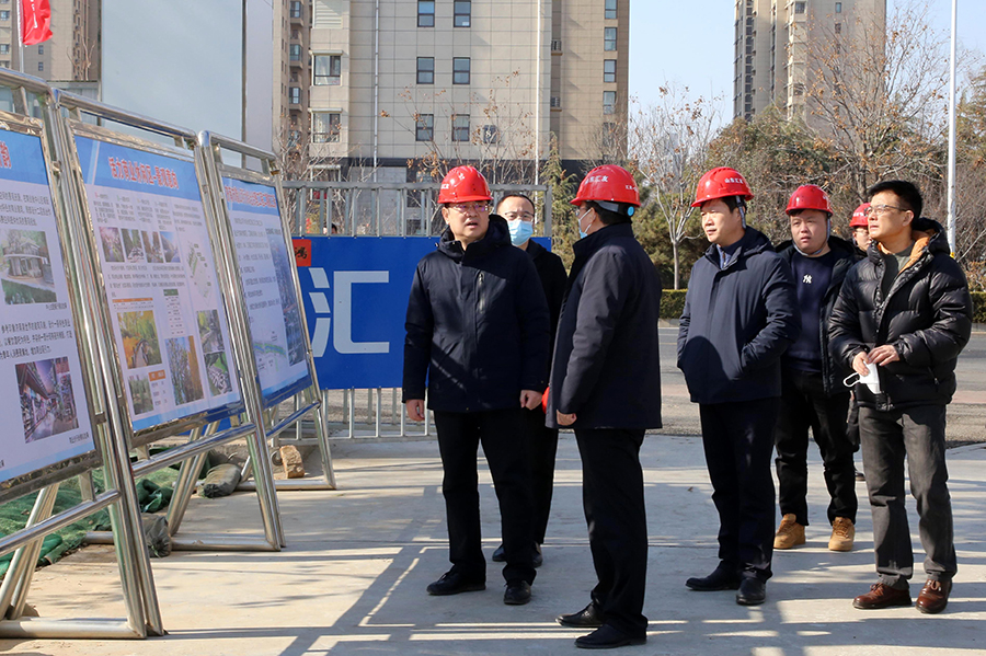 刘敬涛首先听取了工程建设情况的汇报,对工程进度给予充分肯定。他强调,要有序做好复工复产的准备工作,同时兼顾安全文明施工,按照时间节点保质保量完成施工任务,持续优化景观效果,为槐荫区高质量生态建设贡献力量。