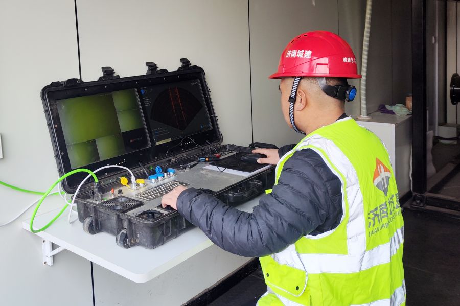 雨污分流改造是国家“十四五”城镇污水处理及资源化利用发展规划的重要内容,也是集团在城市基础设施建设领域的重点业务。集团在实施城市雨污分流改造工程中,积极开展科技创新,成功研发出水下无人清淤机器人,具备在特殊环境下代替人工进行城市河道、涵洞、暗渠等清淤作业的自动控制功能。技术人员远程遥控指挥,利用配有照明、摄像、水下成像声纳等观测设备的水下机器人实现水下作业,然后由清淤车辆把污泥运送至指定地点,完成整套清淤施工作业任务。相比于传统人工下水清淤作业,水下无人清淤机器人具有“人不下井、路不开挖、水不断流、泥不落地”技术优势,极大提升清淤效率,彻底消除人工清淤带来的安全隐患,助力城市精细化管理,提升城市水环境治理效能。