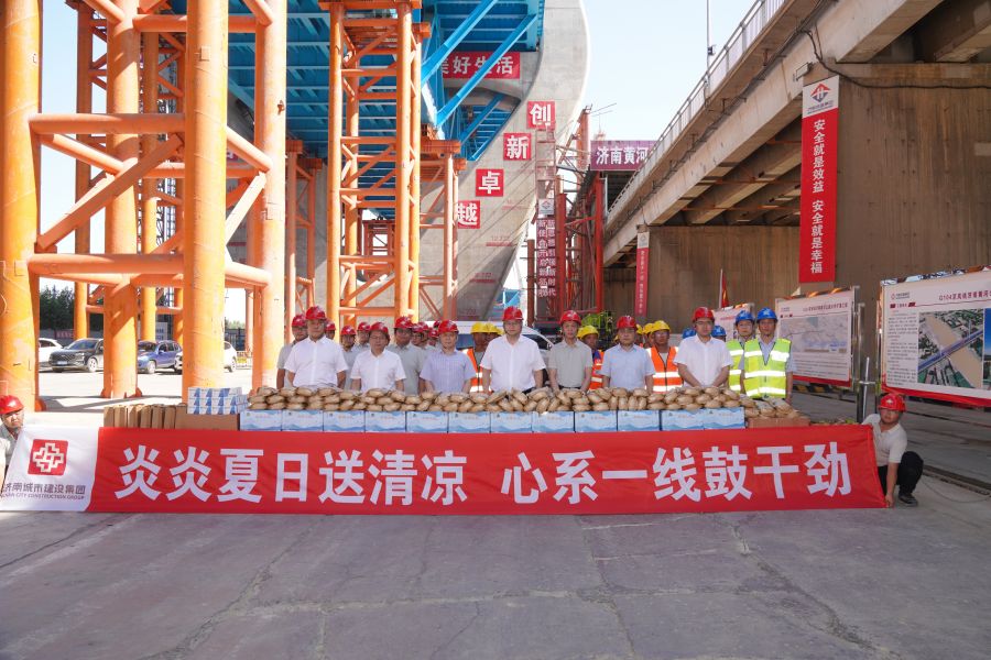 炎炎夏日,骄阳似火。6月30日下午,建设集团党委书记、董事长史海成到集团G104黄河公路大桥工程开展“送清凉”活动,慰问高温下挥汗施工的一线建设者们。集团党委副书记、总经理刘相华等参加活动。