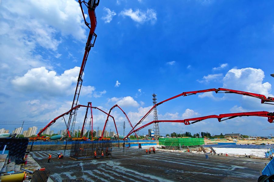 黄河大道一期二标段工程自开工建设以来,项目部全体建设者迅速掀起施工热潮,加大人力、机械投入,克服拆迁、交通导改、连续高温等不利因素,聚力攻坚、高效推进,高峰期间两千余人同步作业,今年共完成165万方土方开挖,累计完成6万吨钢筋制安、49万方混凝土浇筑,提前15天完成主体结构施工任务,为工程全线贯通打下坚实基础。