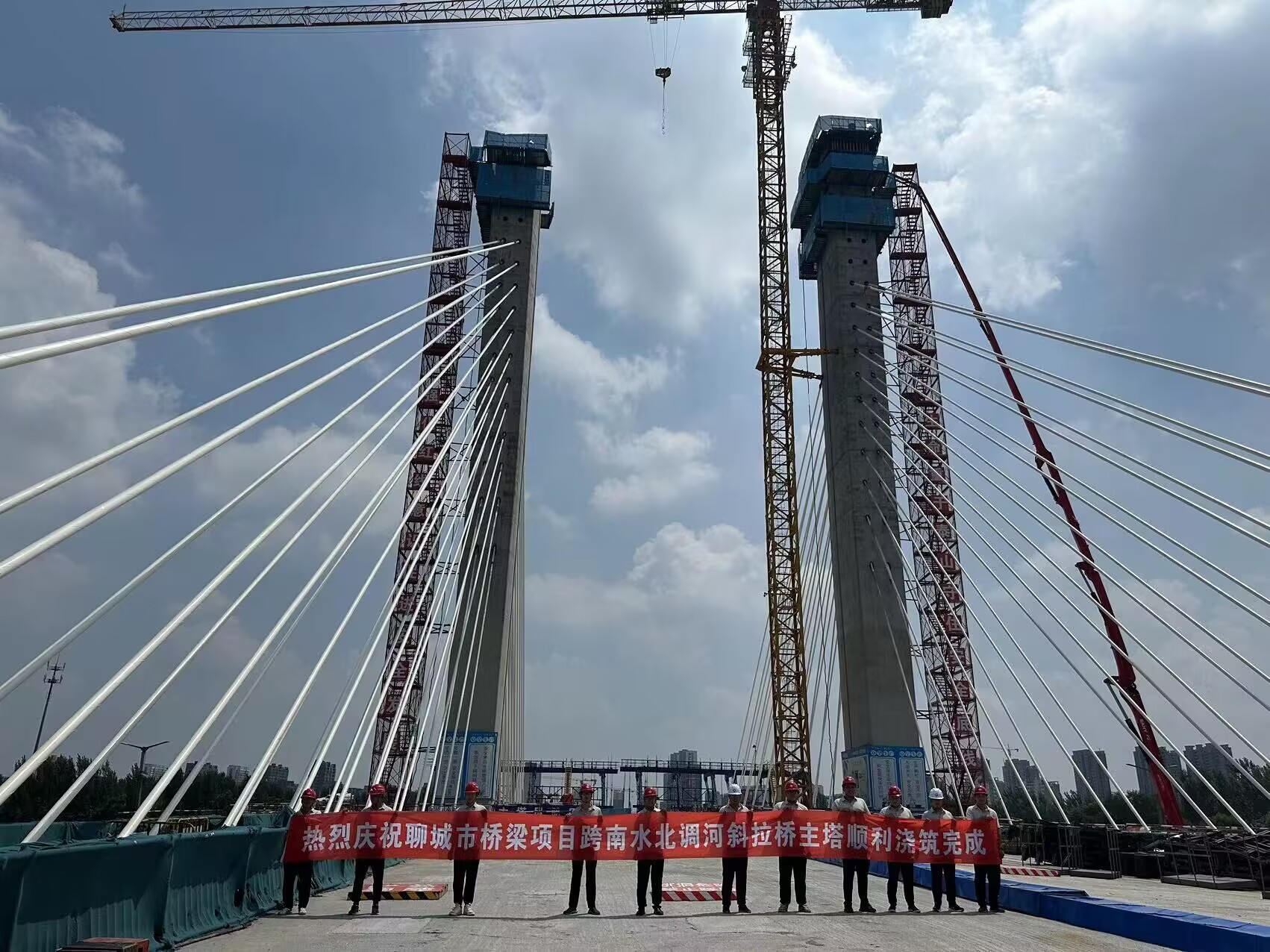 聊城西关街(昌润路-西环路)高架桥工程斜拉桥主塔顺利封顶