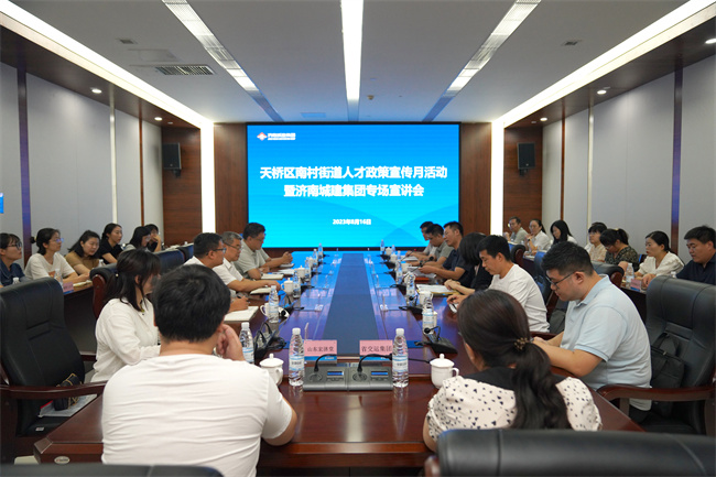 为落实全市“海右人才”政策宣传月活动要求,持续扩大济南人才政策“双30条”的知晓度和覆盖面, 8月16日上午,人才政策宣传月活动暨城建集团专场宣讲会顺利举行。南村街道党工委书记王鹏,区人才办、人社局、科技局有关负责人,集团总工程师许庚及有关部室负责人,南村辖区上药山东、建行天桥支行等重点企业负责人共30余人参加活动。