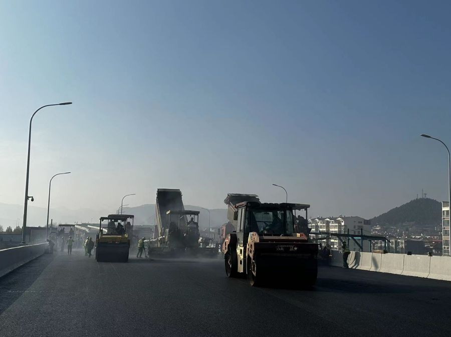 鼓足干劲 乘势而进——S103旅游公路项目S317主线快车道沥青摊铺顺利完成