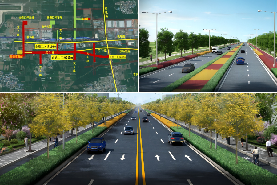 济南遥墙机场二期改扩建工程城市道路工程是连接遥墙机场与济南主城区的重要通道,也是连接临空片区和临港片区的关键道路群,包含南主进出场路高架及地面道路工程等施工内容。本次验收的济南遥墙机场二期改扩建工程首批城市道路工程包含次3路、支2路、支5路、支5-1路共4条道路,道路长2.8公里,道路红线宽30米-50米。